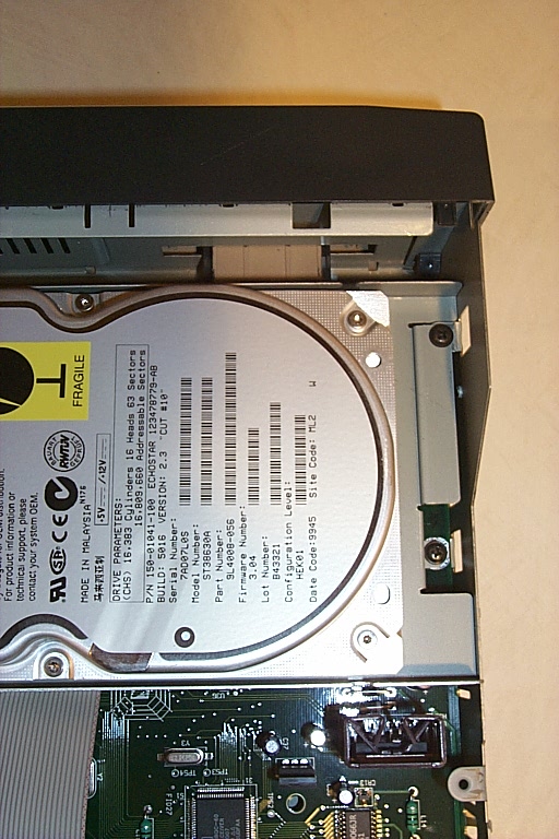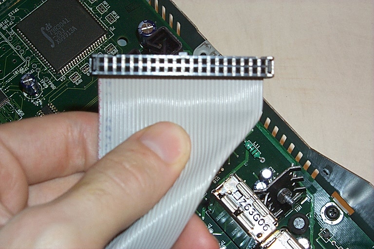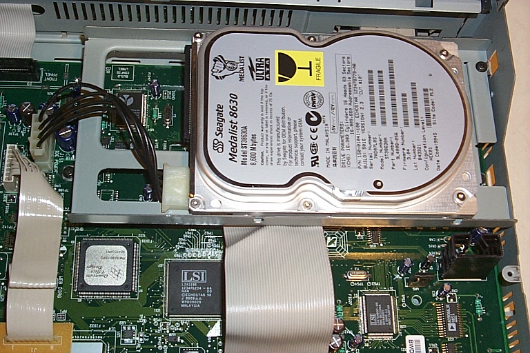 Step 8 You should be able to lift the drive and the mount off the unit now. Please note that if your dishplayer was running before you started this upgrade the drive will likely be extermely hot (thanks to Ken for pointing this out). Gently remove the last connector to the drive (this is the IDE connector). Be cautious not to bend any of the pins on the drive, especially if you plan on using the drive for something else.
